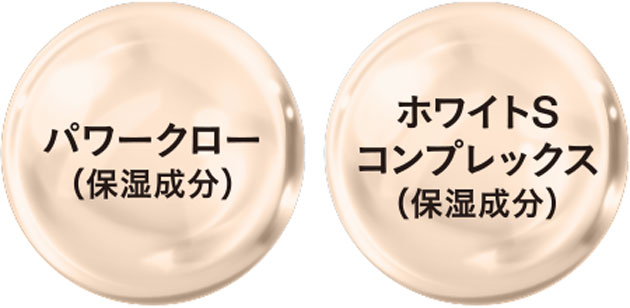 パワークロー:ハルパゴフィタム根エキス(保湿成分) ホワイトSロックコンプレックス:加水分解シロガラシ種子エキス、ツボクサエキス、アーチチョーク葉エキス(保湿成分) 乾燥小じわ:乾燥による小じわを目立たなくする(効能評価試験済み)